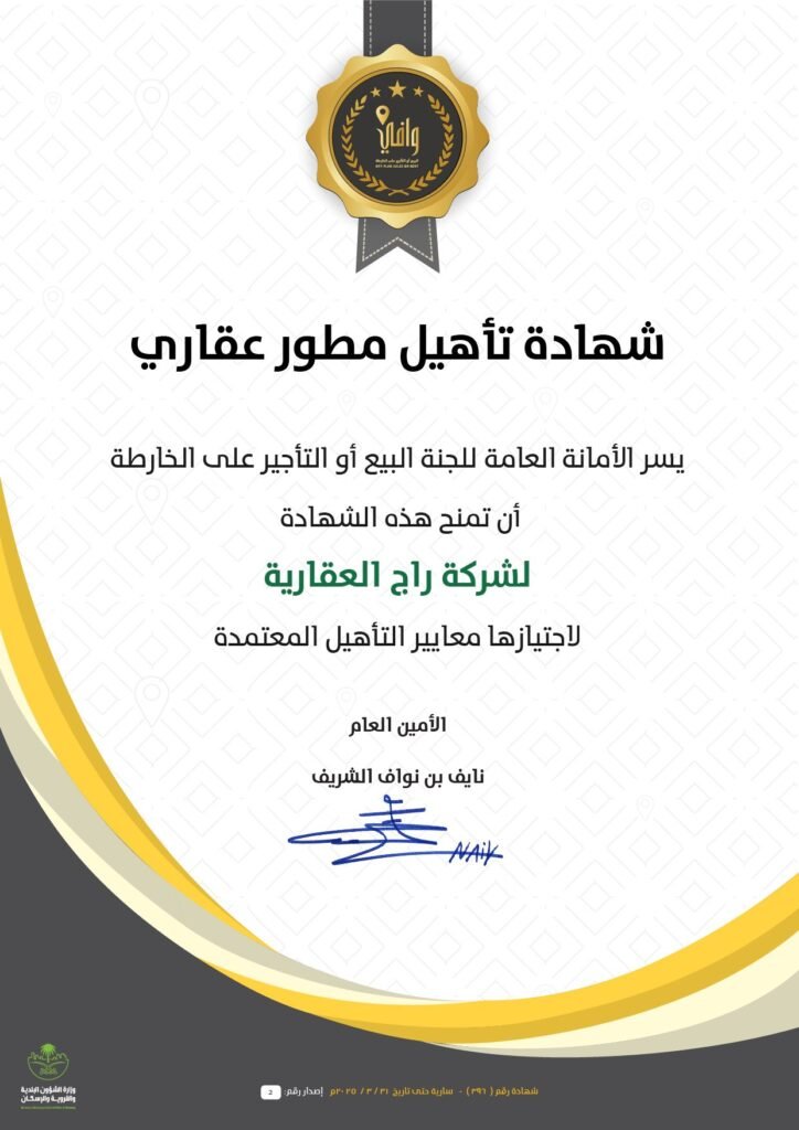 حصلت شركة اتحاد الراجحي العقارية على شهادة مطور عقاري لمشاريع البيع على الخارطة معتمدة لدى وزارة الإسكان