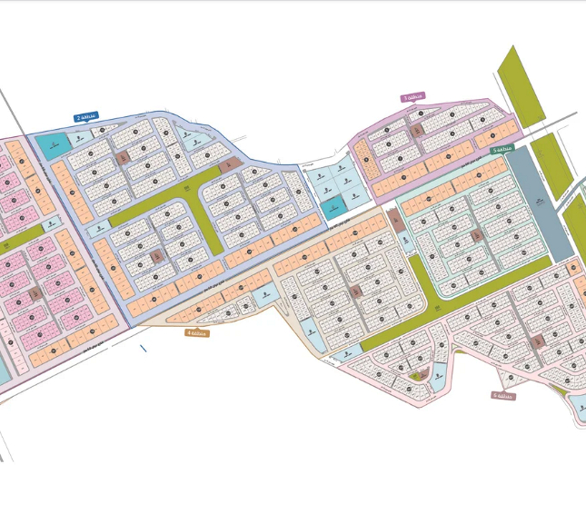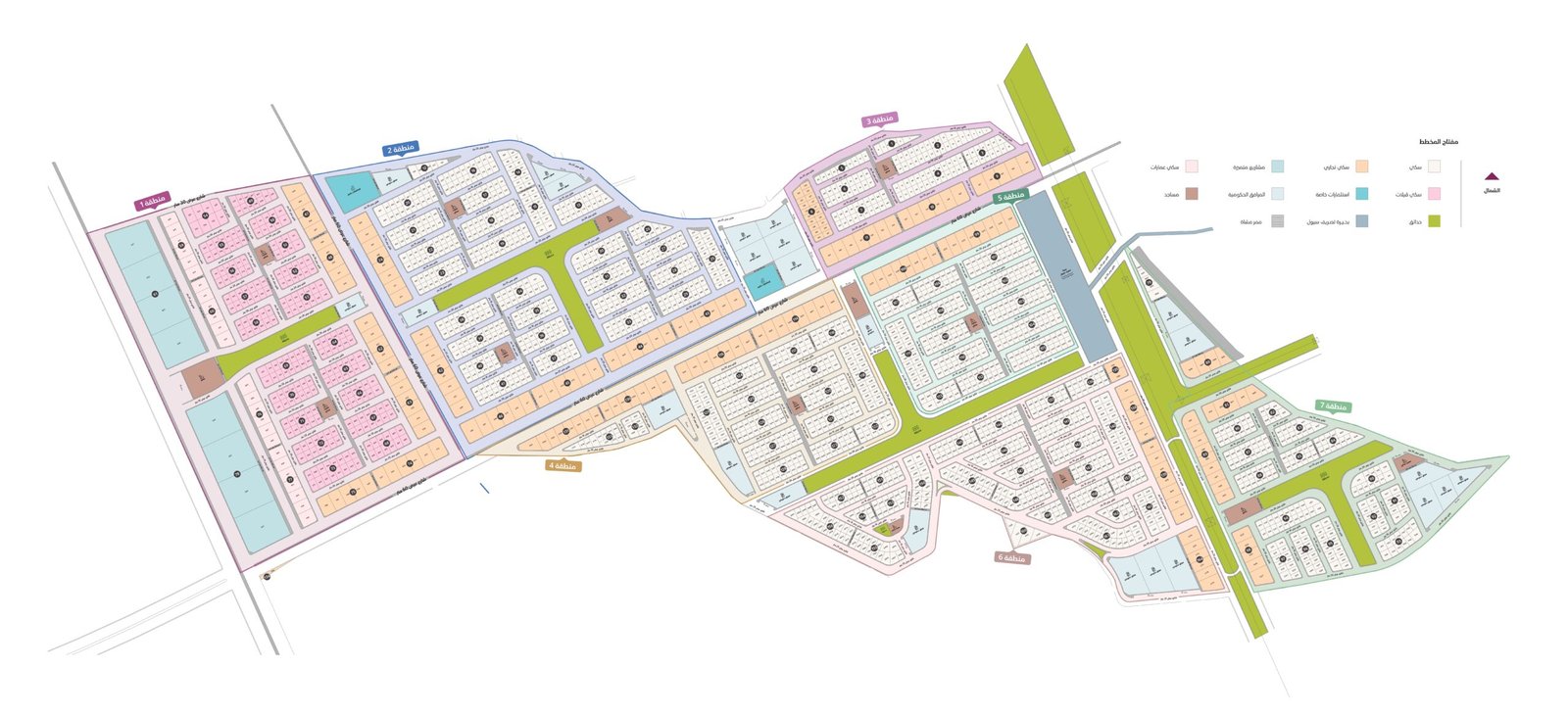 تتوزع استخدامات الأراضي في المخطط بشكل دقيق لتشمل: 1,966 قطعة سكنية بمساحة إجمالية 798,539 م²، 180 قطعة سكني تجاري بمساحة 266,882 م²، 25 قطعة مخصصة للعمائر السكنية بمساحة 30,997 م²، إضافة إلى 8 قطع للمشاريع المتميزة بمساحة 86,943 م².