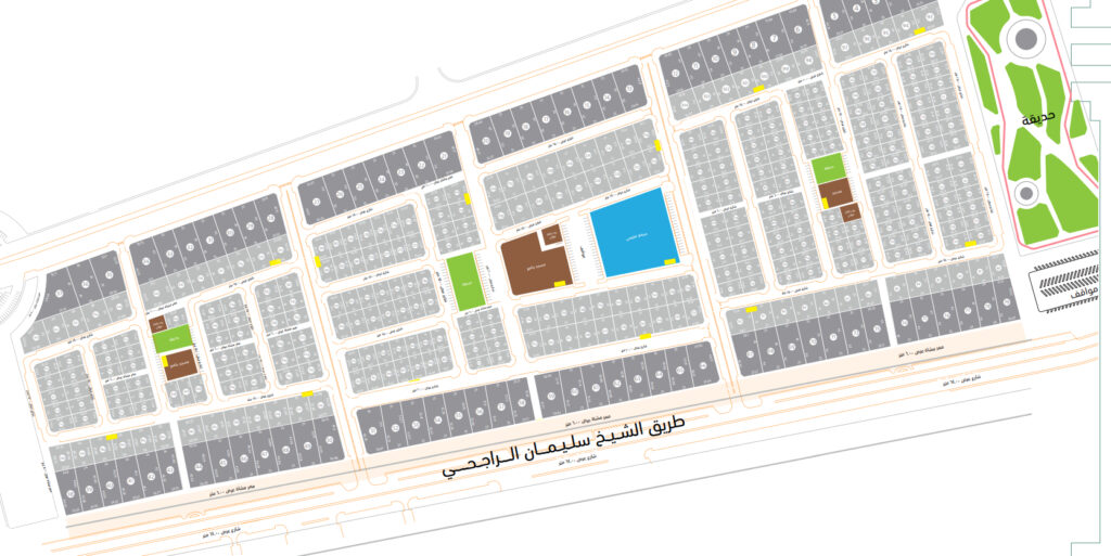 - القطع السكنية: 309 قطعة أرض، مخصصة لبناء منازل عصرية في بيئة هادئة.
