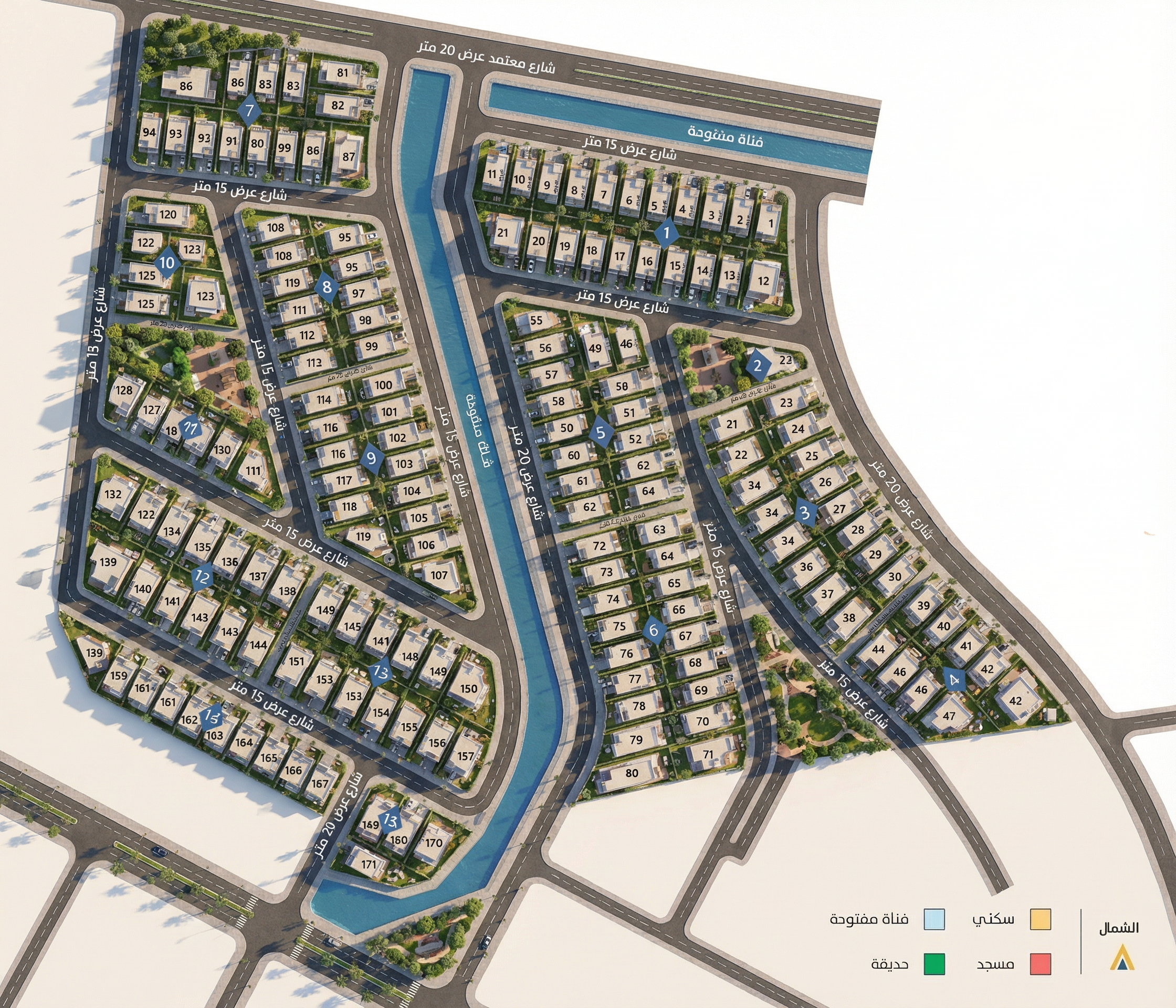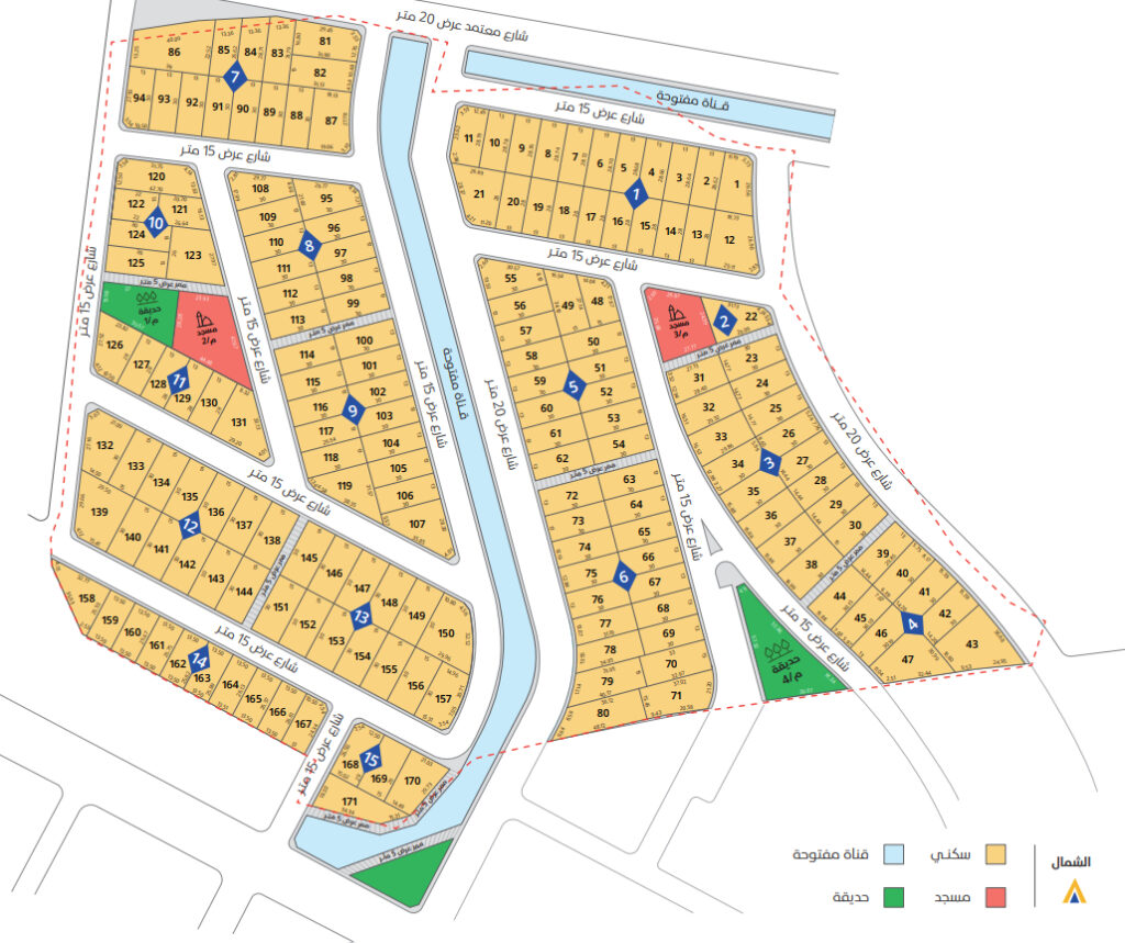 يمتد المشروع على مساحة إجمالية تبلغ 124,234 متراً مربعاً، وقد تم تخطيطه بعناية ليضم 171 قطعة أرض سكنية، مما يوفر خيارات متنوعة تتناسب مع مختلف الاحتياجات.